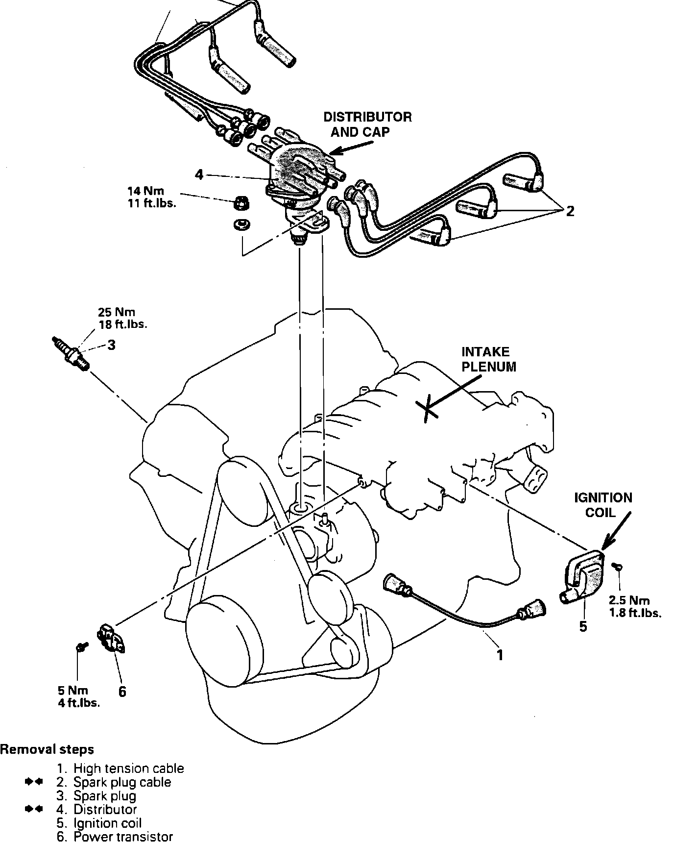 The distributor assembly is located in the front left hand side of the engine.