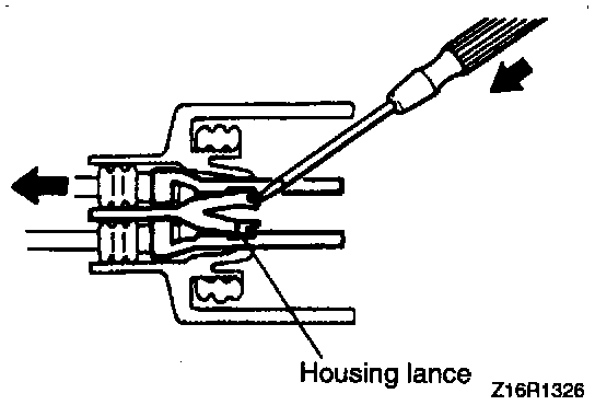 ForewordConnectors which are loose shall be rectified by removing the female terminal from connector housing and raising its lance to establish a more secure engagement. Removal of connector terminal used for MFI and ELC-4 A/T control circuit shall be done in the following manner: