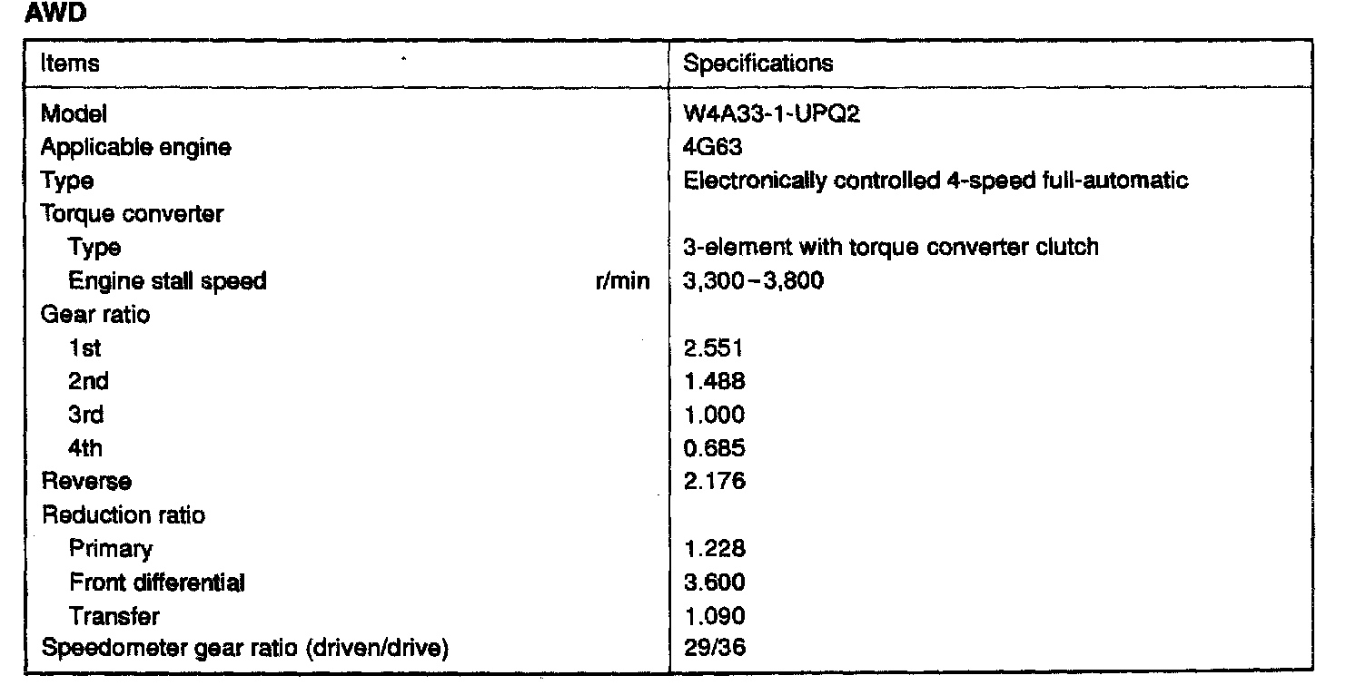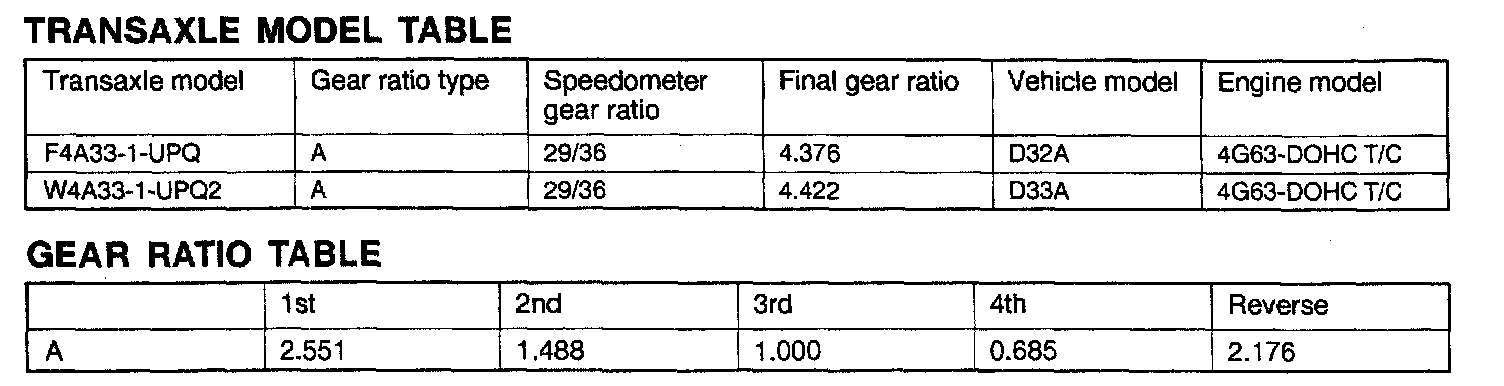 W4A33 4-spd A/T, Gear Ratios ('95):