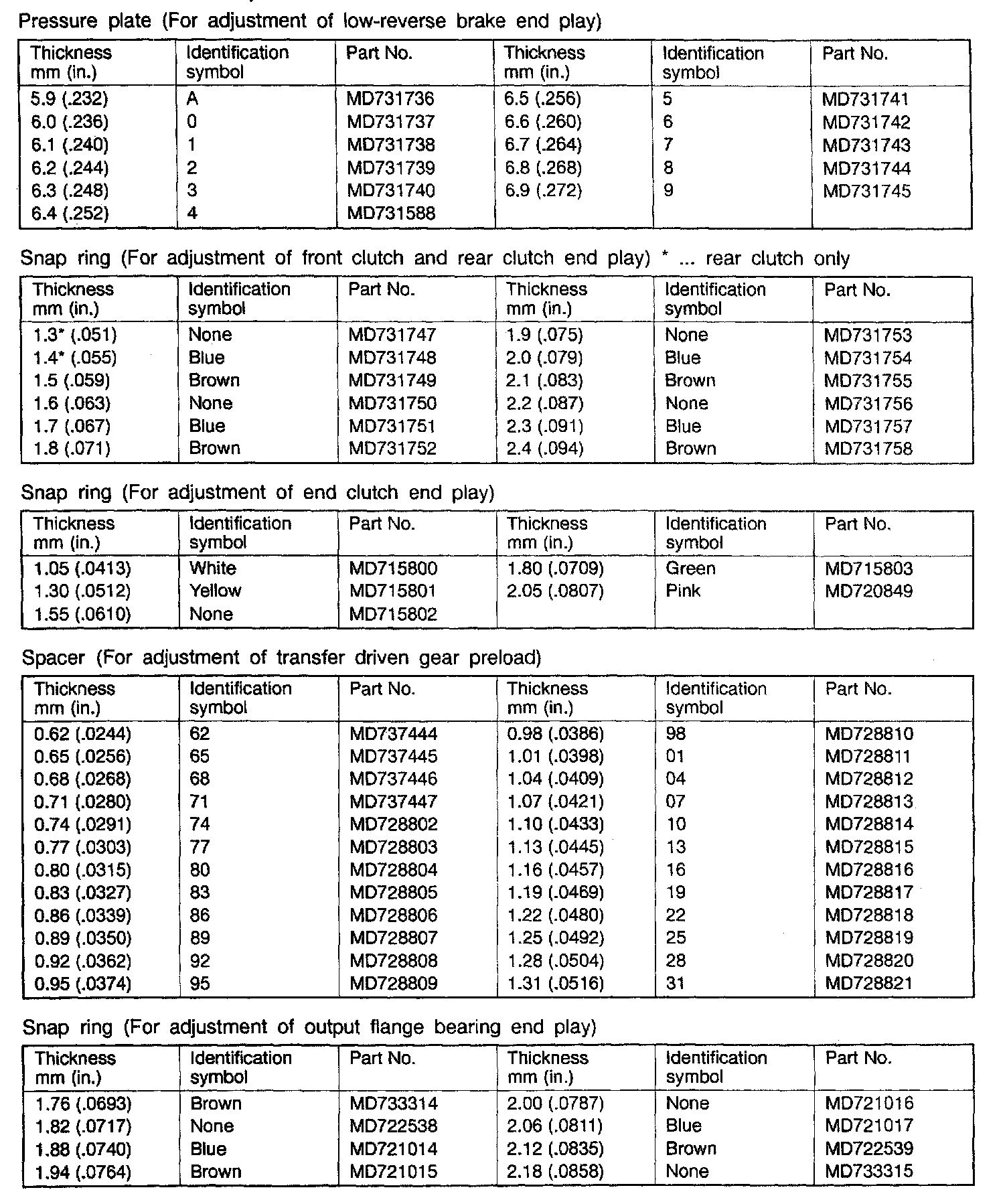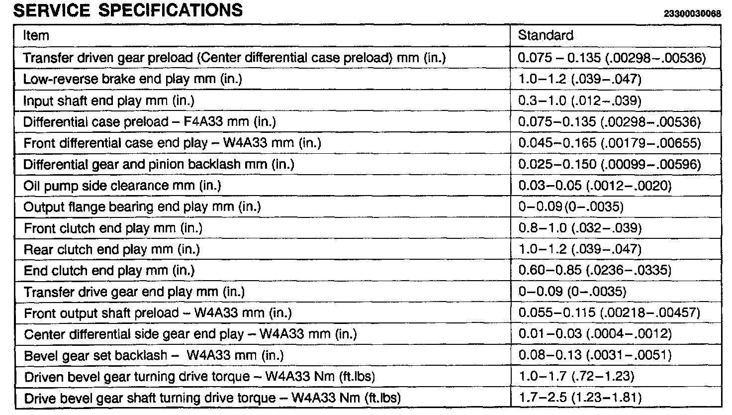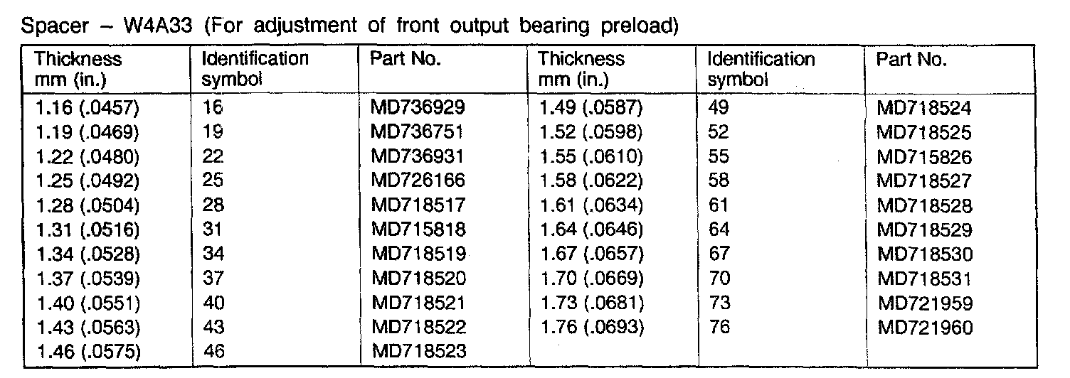 W4A33 4-spd A/T, Front Output Bearing Preload: