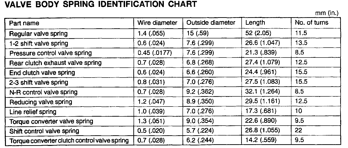 F4A33/W4A33 4-spd A/T, Spring Dimensions: