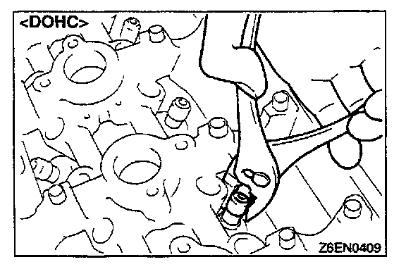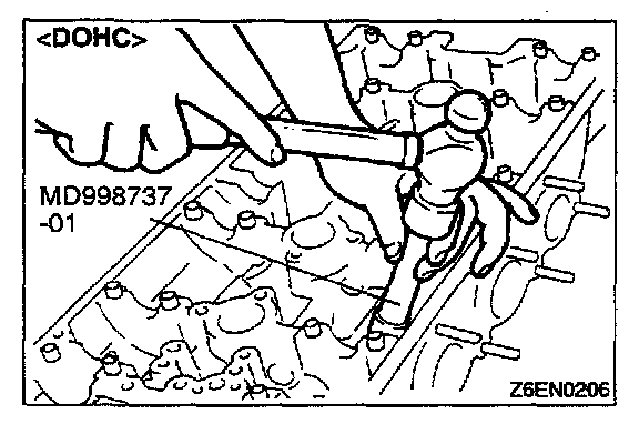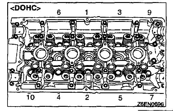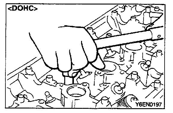 1. Using a 12 mm - 12 points socket wrench, loosen the cylinder head bolts. Loosen evenly, little by little.