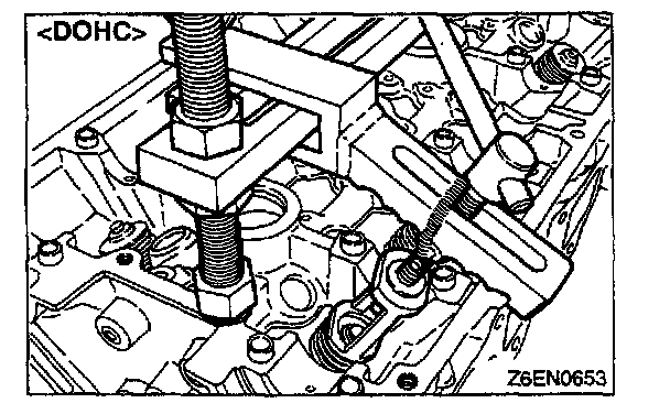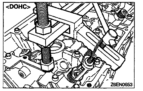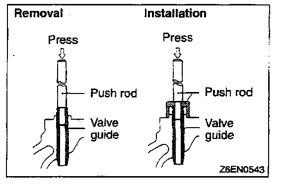 1. Using the special tool and a press, remove the valve guide toward cylinder head gasket surface