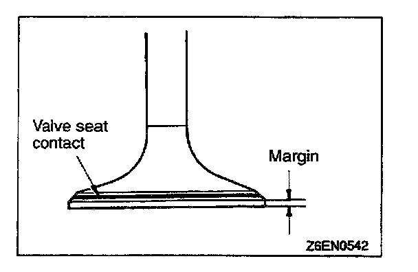 1. Check the valve face for correct contact. If incorrect, reface using valve refacer. Valve seat contact should be maintained uniform at the center of valve face.