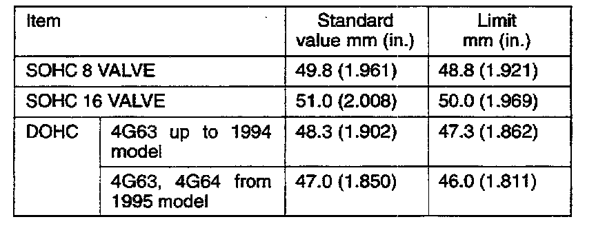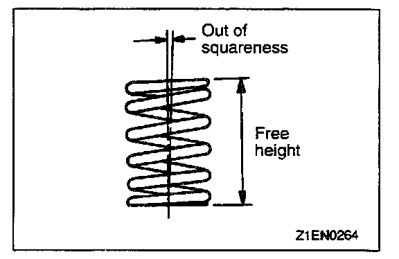 1. Measure the free height of spring and, if it is smaller than the limit, replace.