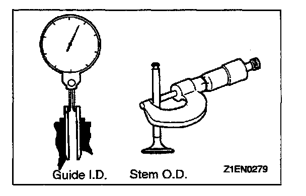 1. Measure the clearance between the valve guide and valve stem. If the limit is exceeded, replace the valve guide or valve, or both.