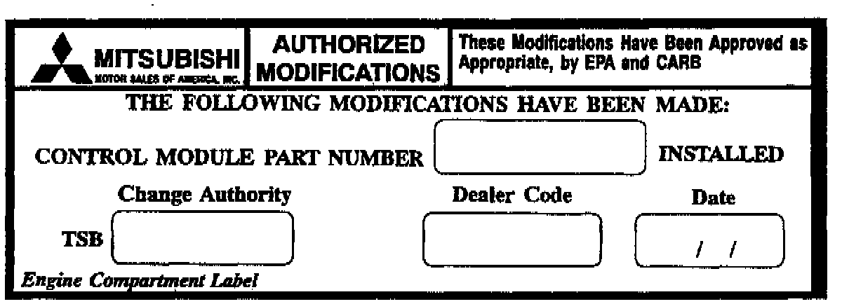 15. Using a ball-point pen, enter the replacement PCM part number, this TSB number (TSB-96-13-003), your dealer code, and the current date on the Engine Compartment Label.