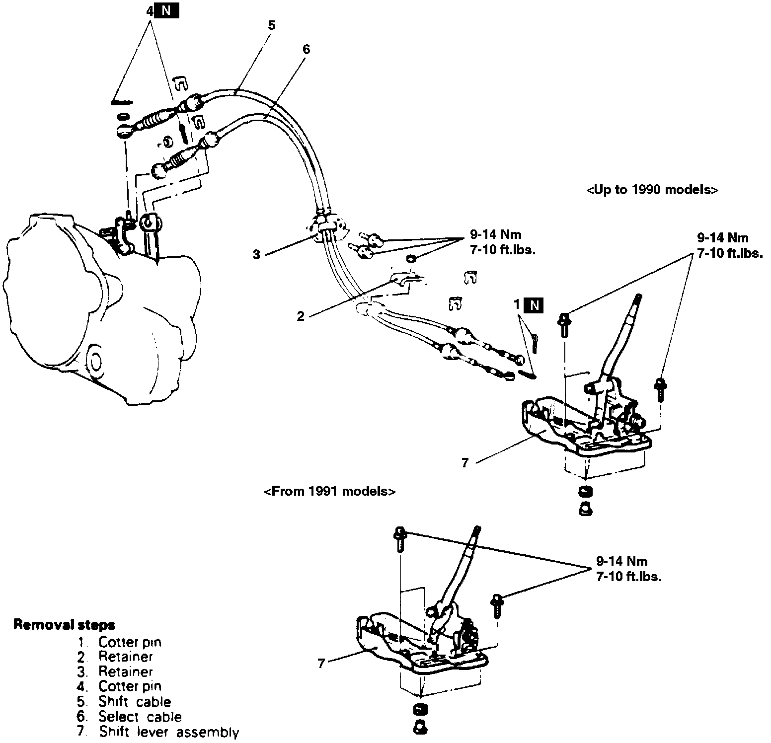 Replace transaxle shift cables in numbered sequences shown in Fig. 21 through 23, noting the following when installing: