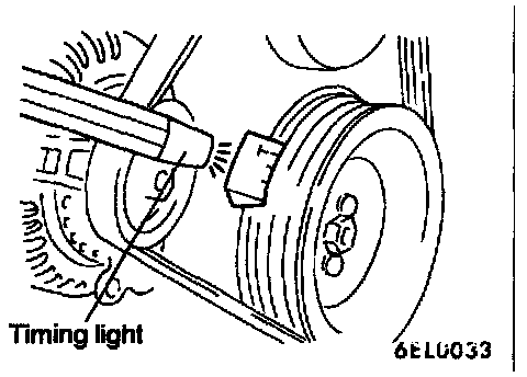NOTE: Do not use the scan tool. If tested with the scan tool connected to the data link connector, the ignition timing will not be the basic timing but be ordinary timing.