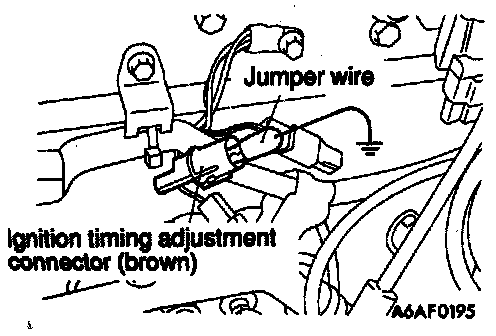 13. Stop the engine, remove the jumper wire from the ignition timing adjustment connector (brown), and return the connector to its original condition.