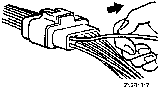 When the terminal stopper of connector is out of order, engagement of male and female terminals becomes improper even when the connector itself is engaged perfectly and the terminal sometimes slips out to the rear side of connector. Ascertain, therefore, that each terminal does not come off the connector by pulling each harness wire.