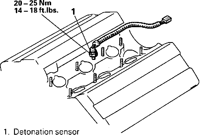 The detonation (knock) sensor is located on a bracket under the intake manifold. The bracket is centrally mounted to detect knocking from both cylinder banks.