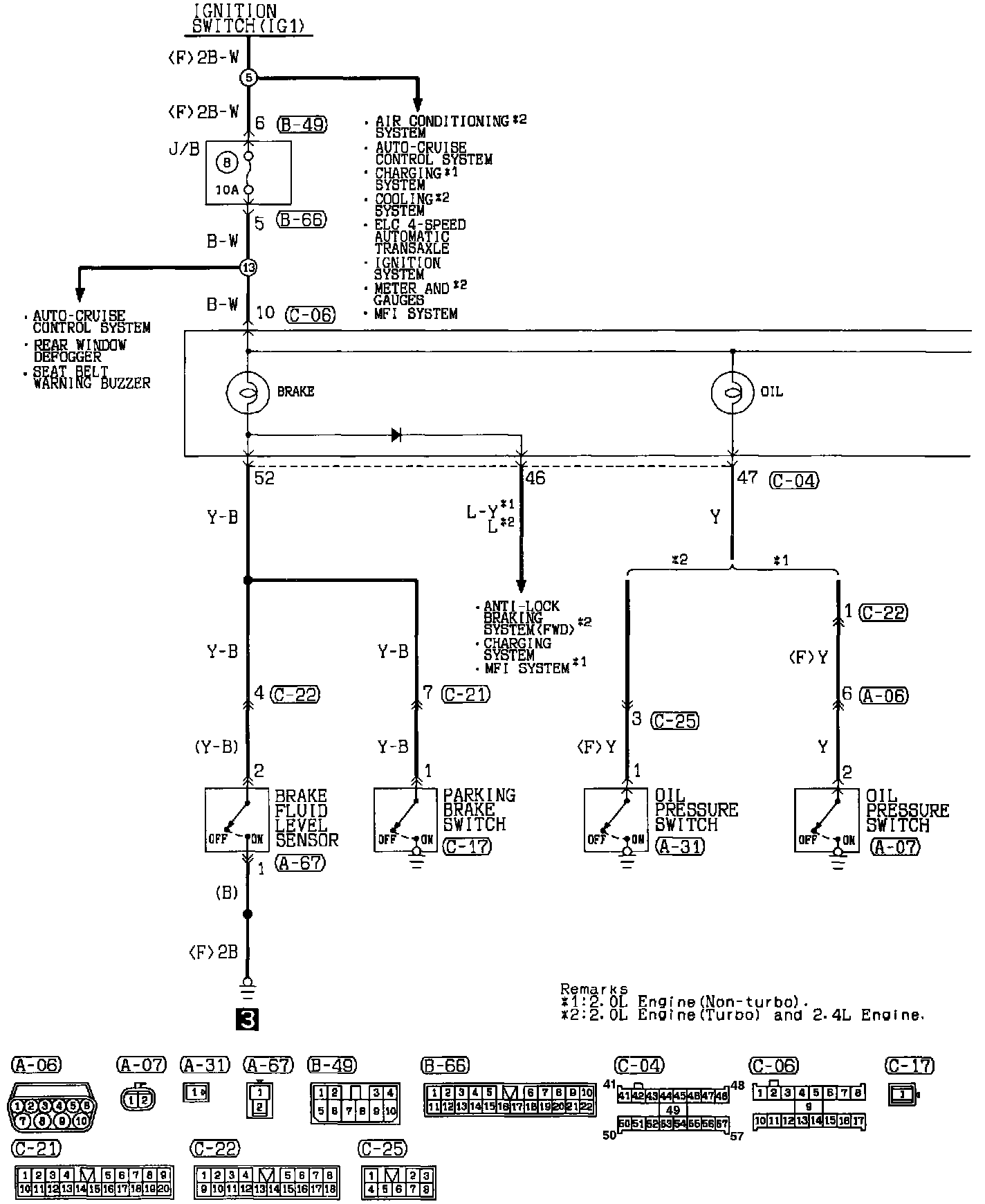 Brake, Oil Pressure And Low Fuel Level Warning Light Circuit (Part 1 Of 2):