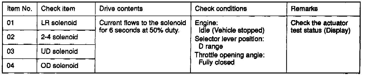 Actuator Test Reference Table