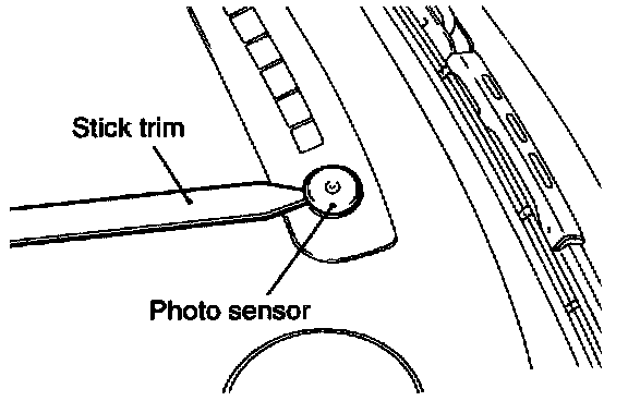 Using a trim stick, remove the photo sensor from the defroster garnishes.