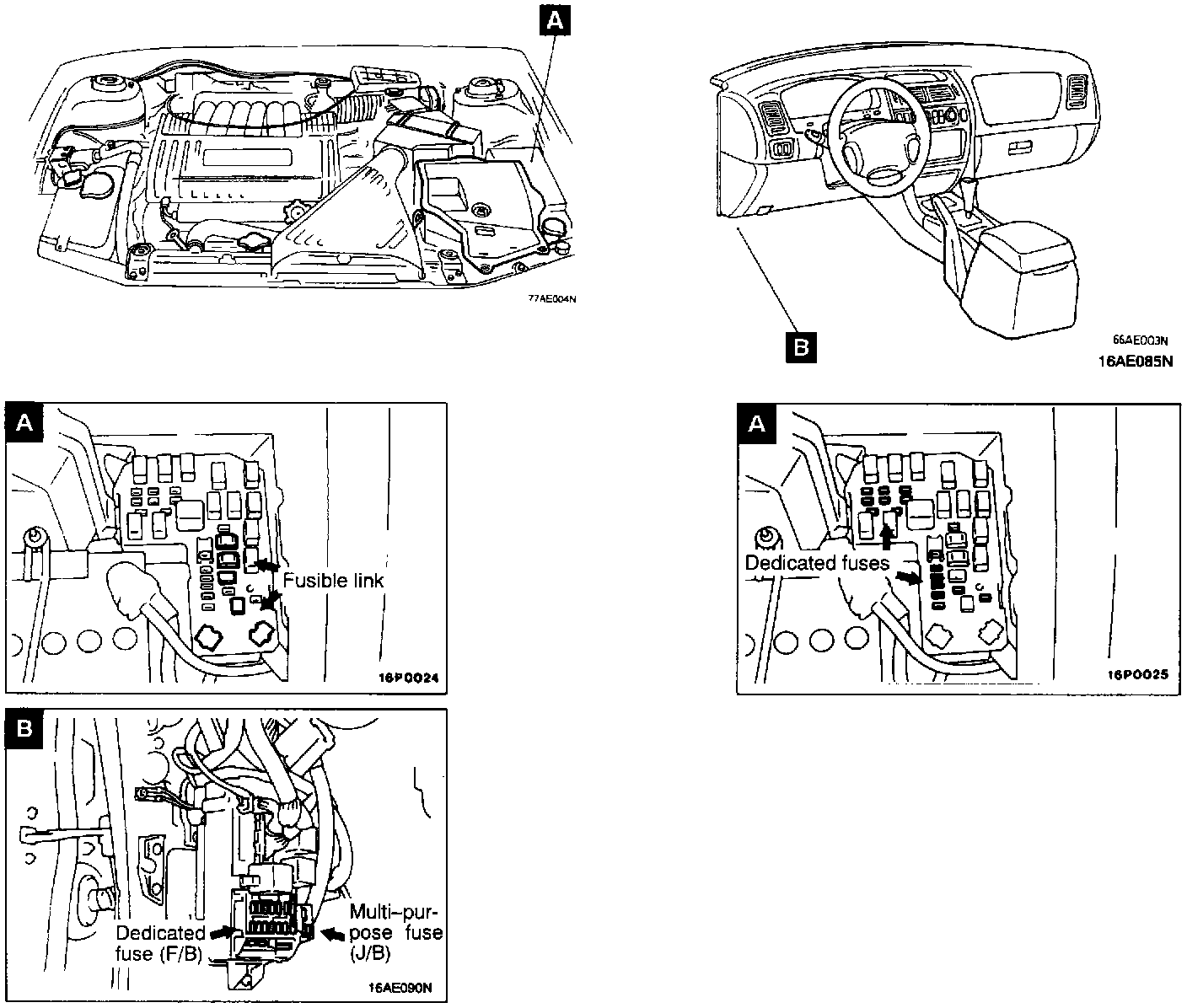Fusible Link And Fuse Location Overall View And View A - B: