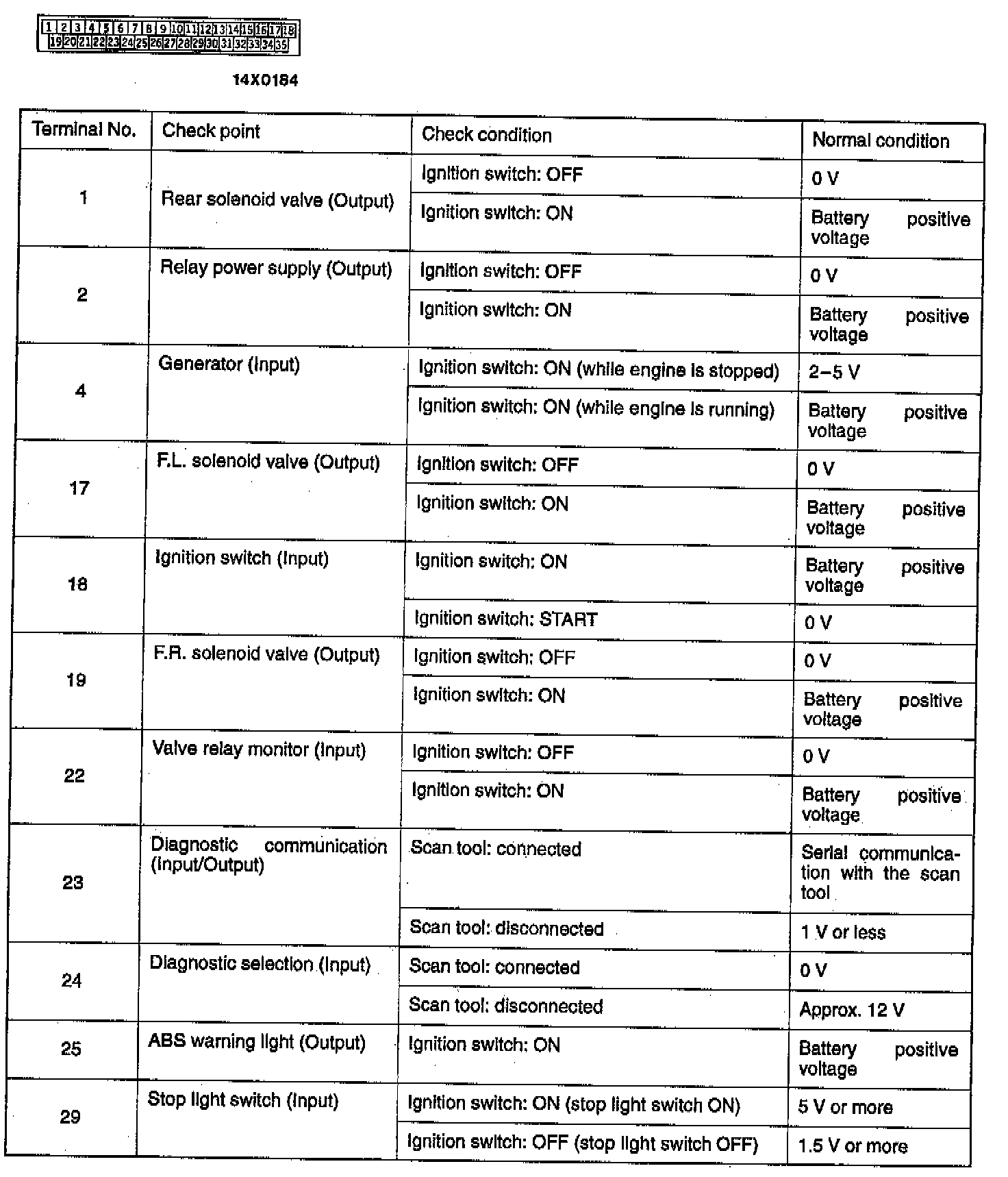 Terminal Voltage Check Chart: