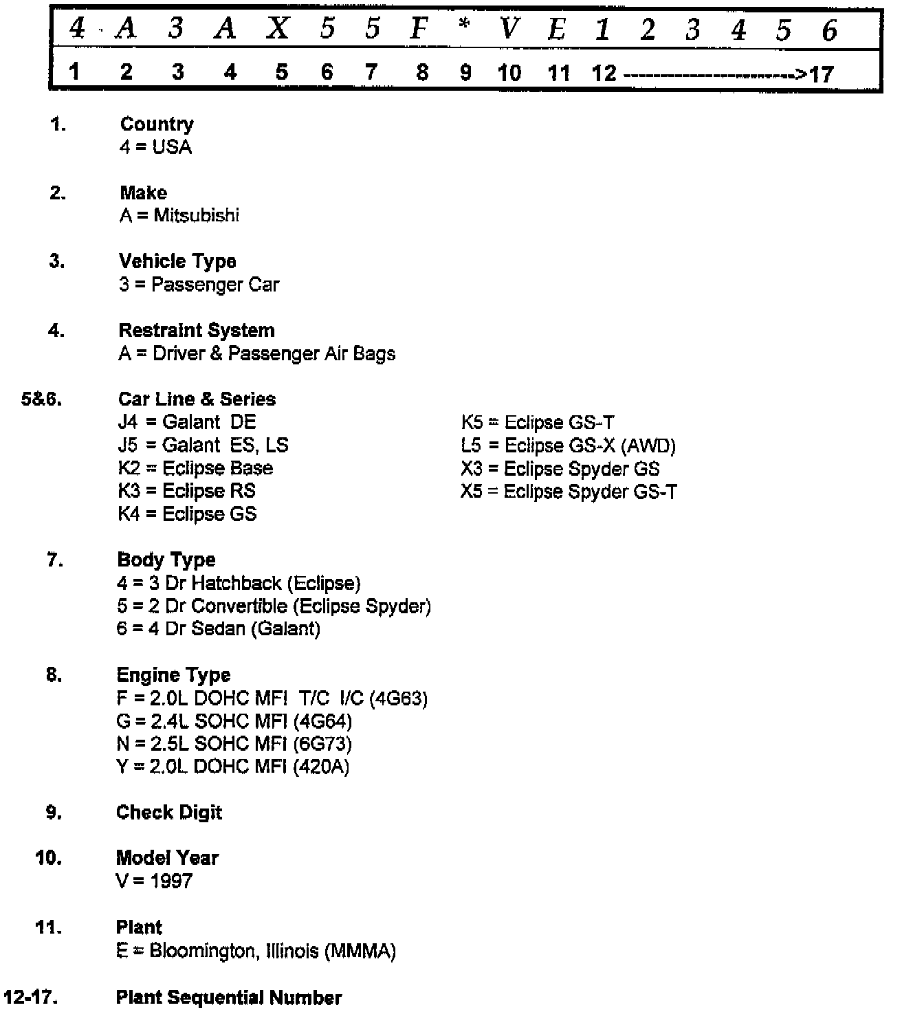 This bulletin contains information to decode the Vehicle Identification Numbers for all 1997 MMSA vehicles. VIN information for previous years is in the chart below.