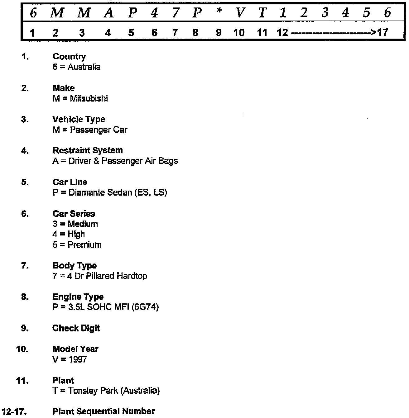 1997 MMC (Japan) MODELS - VIN with POSITION NUMBER UNDERNEATH:
