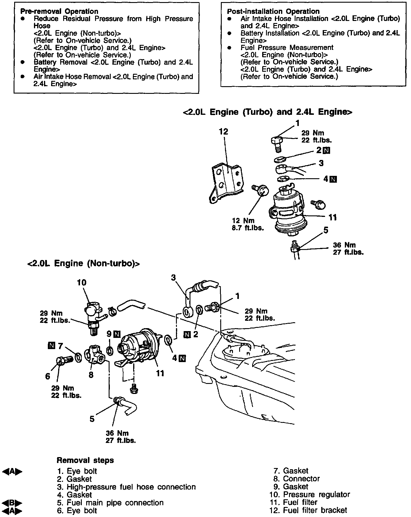 Hold the fuel filter with a spanner and loosen the flare nut. Then disconnect the fuel main pipe.