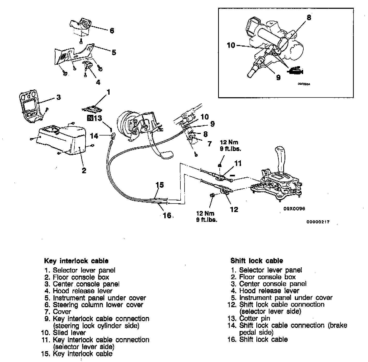 C. Shift lock cable (selector lever side) installation. (12)
