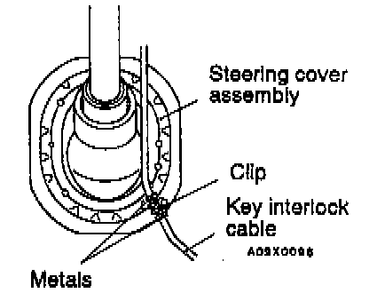 Fix securely by the clip between the metals of the key interlock cable to the steering cover assembly.