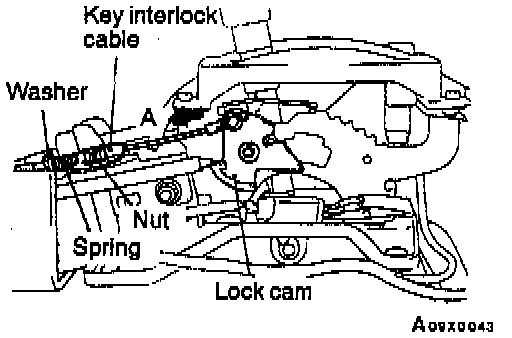 2. Install the spring and washer of the key interlock cable as shown.