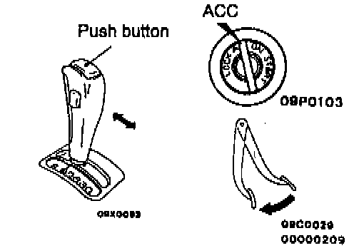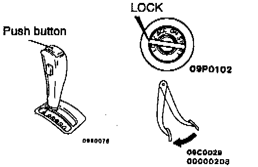 Check to be sure that the ignition key smoothly turns to the "LOCK" position when the selector lever is then set to the "P" position and the button is released.