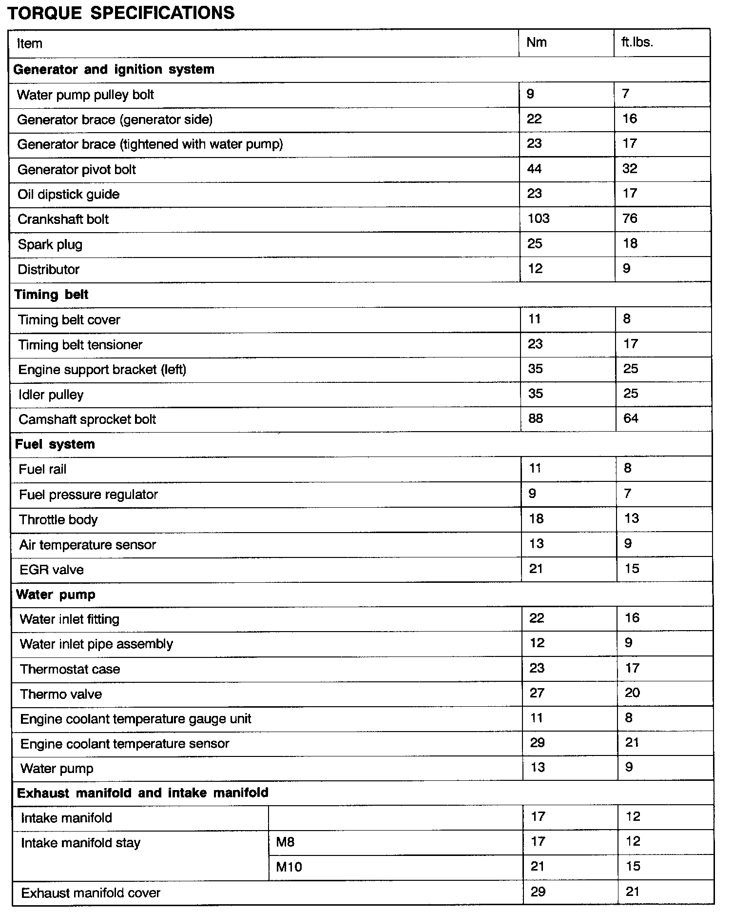 Fastener Tightening Specifications