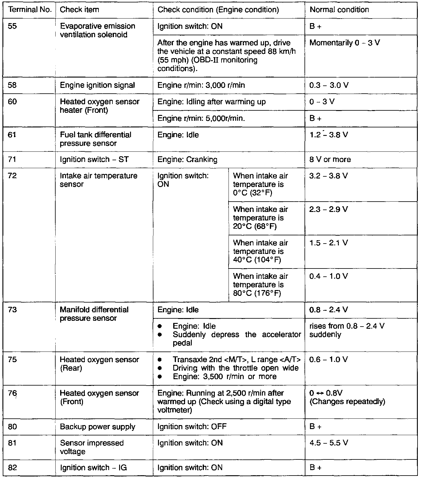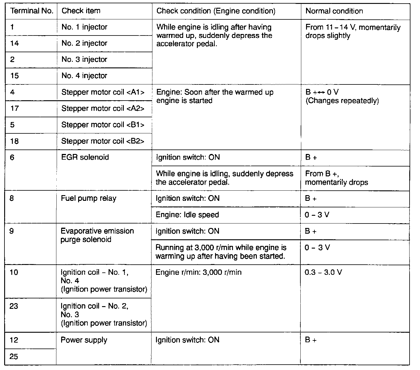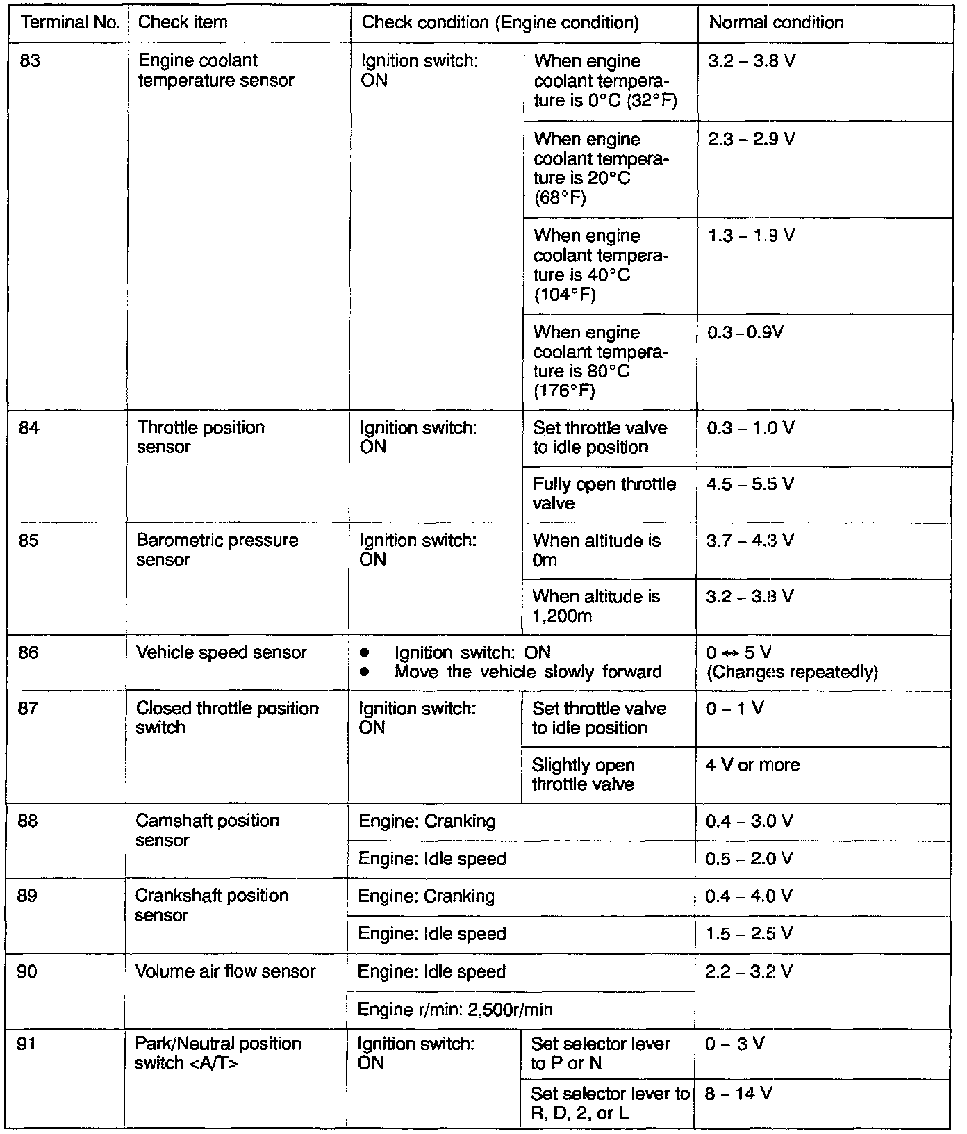 Engine Control Module (ECM) Connector Terminal Arrangement
