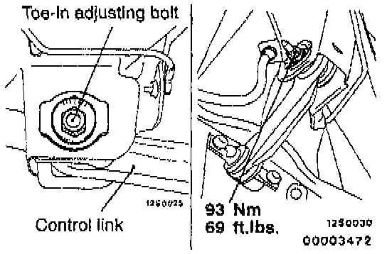 2. Adjust by turning the toe adjusting bolt (mounting bolt on the inside of the control link).