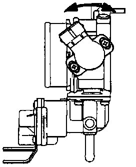 6. Slowly turn the throttle position sensor clockwise until the point at which the closed throttle position switch is turned OFF is found.