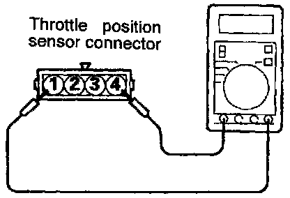 2. Measure the resistance between the throttle position sensor side connector terminal 1 and terminal 4.
