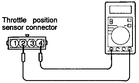 3. Measure the resistance between the throttle position sensor side connector terminal 2 and terminal 4.