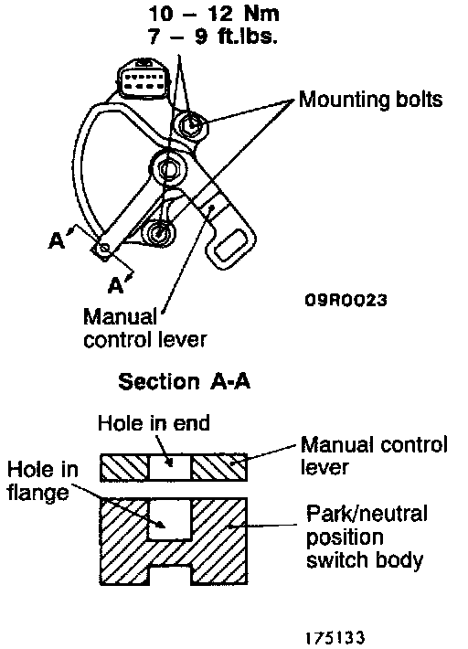 5. Tighten the park/neutral position switch mounting bolts to 13 Nm (9 ft lb ).