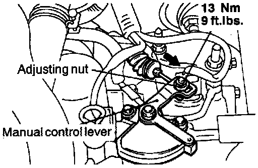 2. Loosen the control cable-to-manuallever coupling nut to release the cable and lever.
