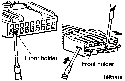 1. Insert screwdriver [1.4 mm (0.06 in.) width] as shown in the figure, disengage front holder and remove it.