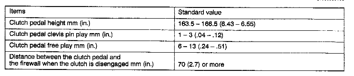 F5M41/F5M42 5-spd M/T, Clutch Standard Values: