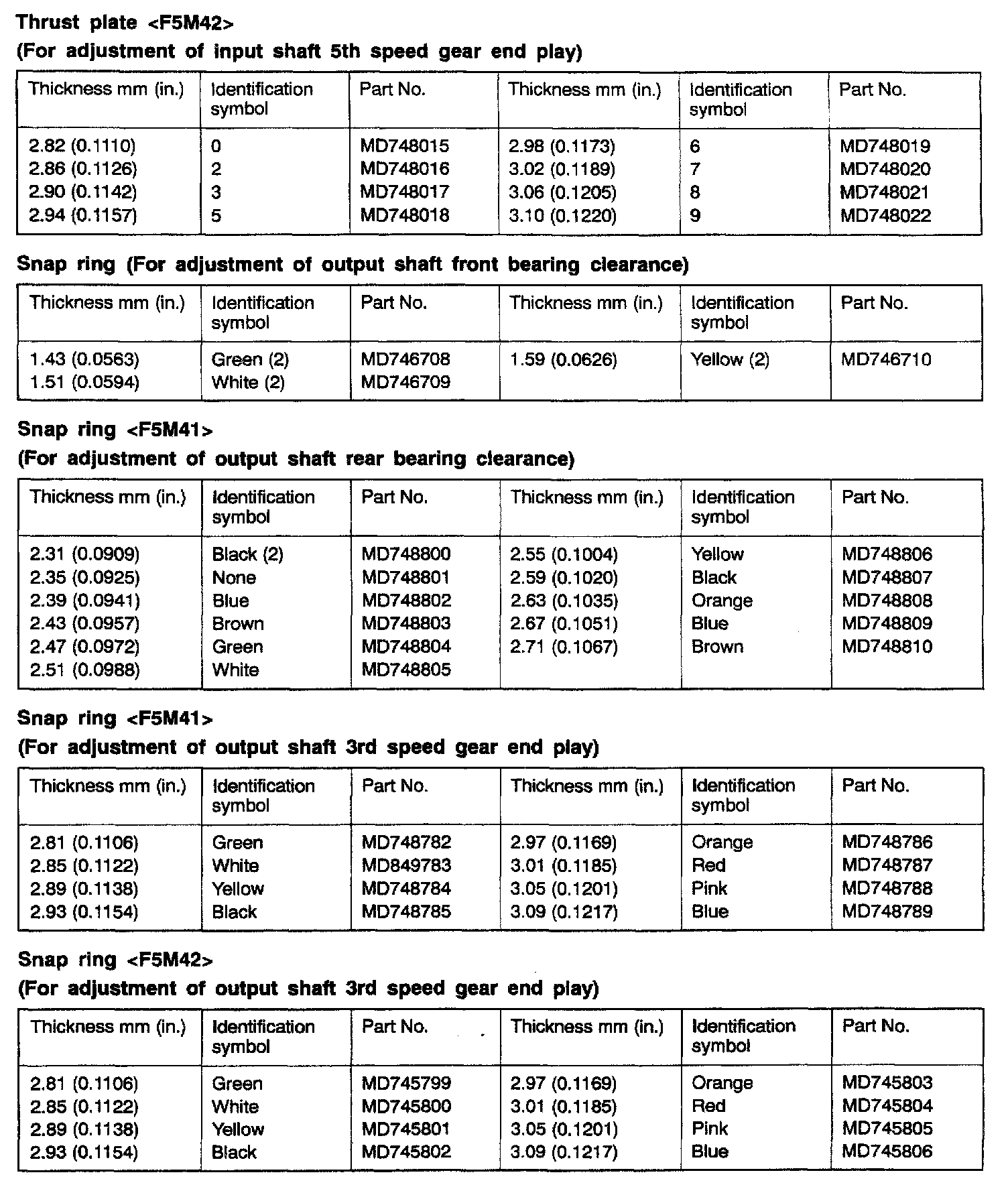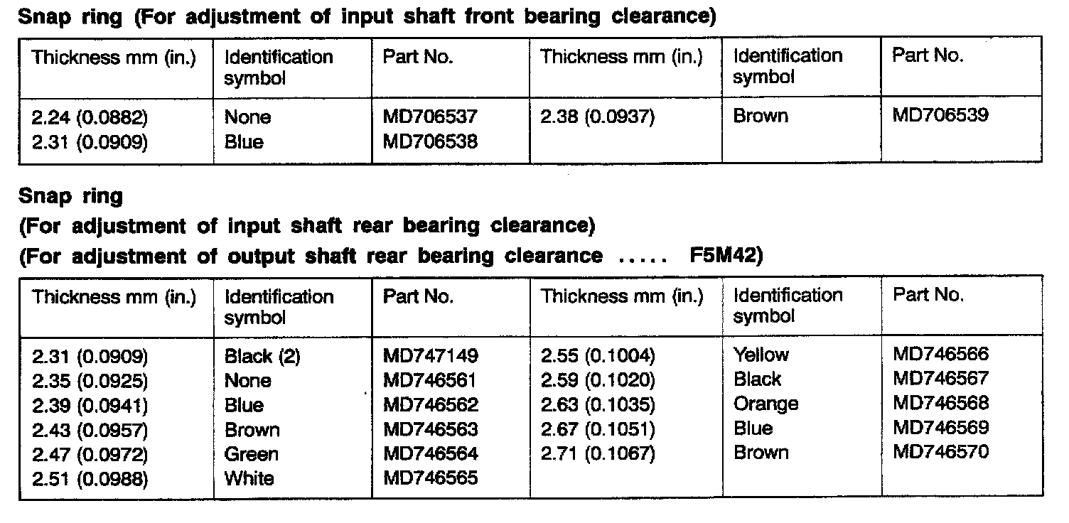 F5M41/F5M42 5-spd M/T, Clearances & End Play: