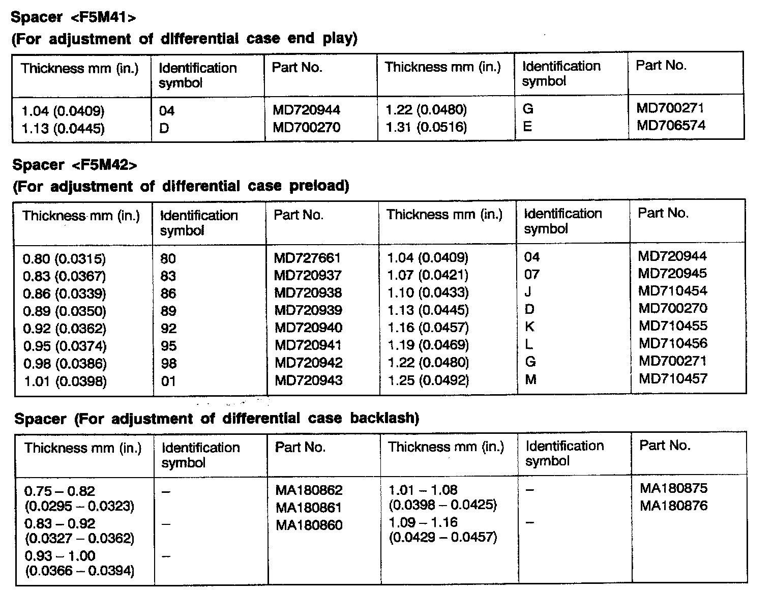 F5M41/F5M42 5-spd M/T, Differential Case End Play, Preload & Backlash: