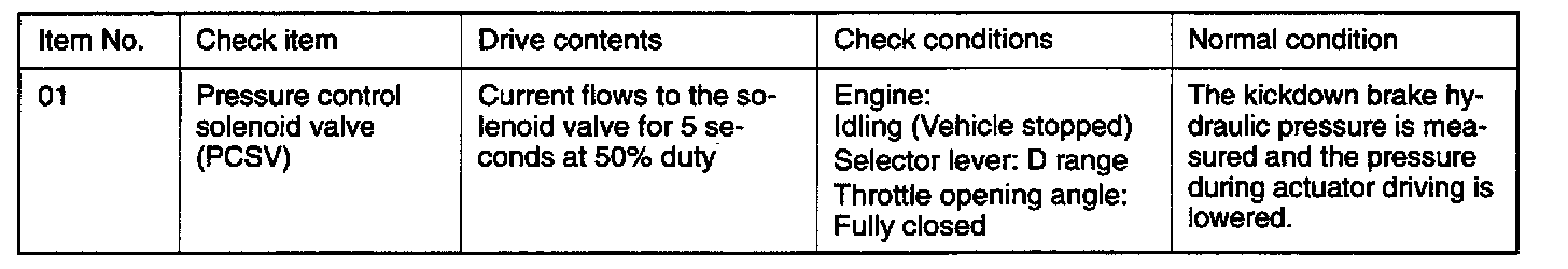 Actuator Test Reference Table