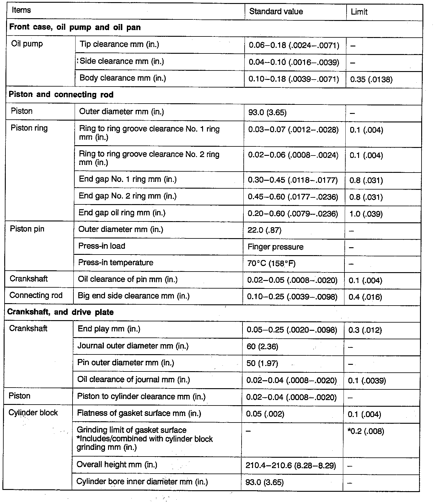Engine-Overhaul Specifications