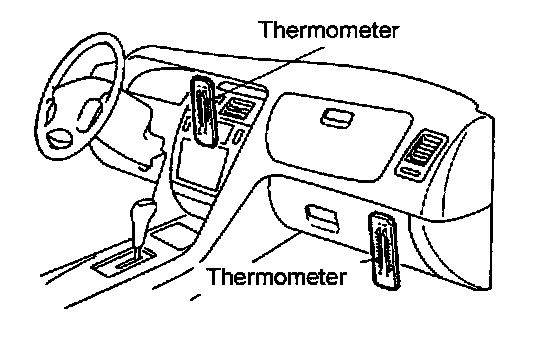 10. Insert a thermometer in the left center A/C outlet and operate the engine for 20 minutes.