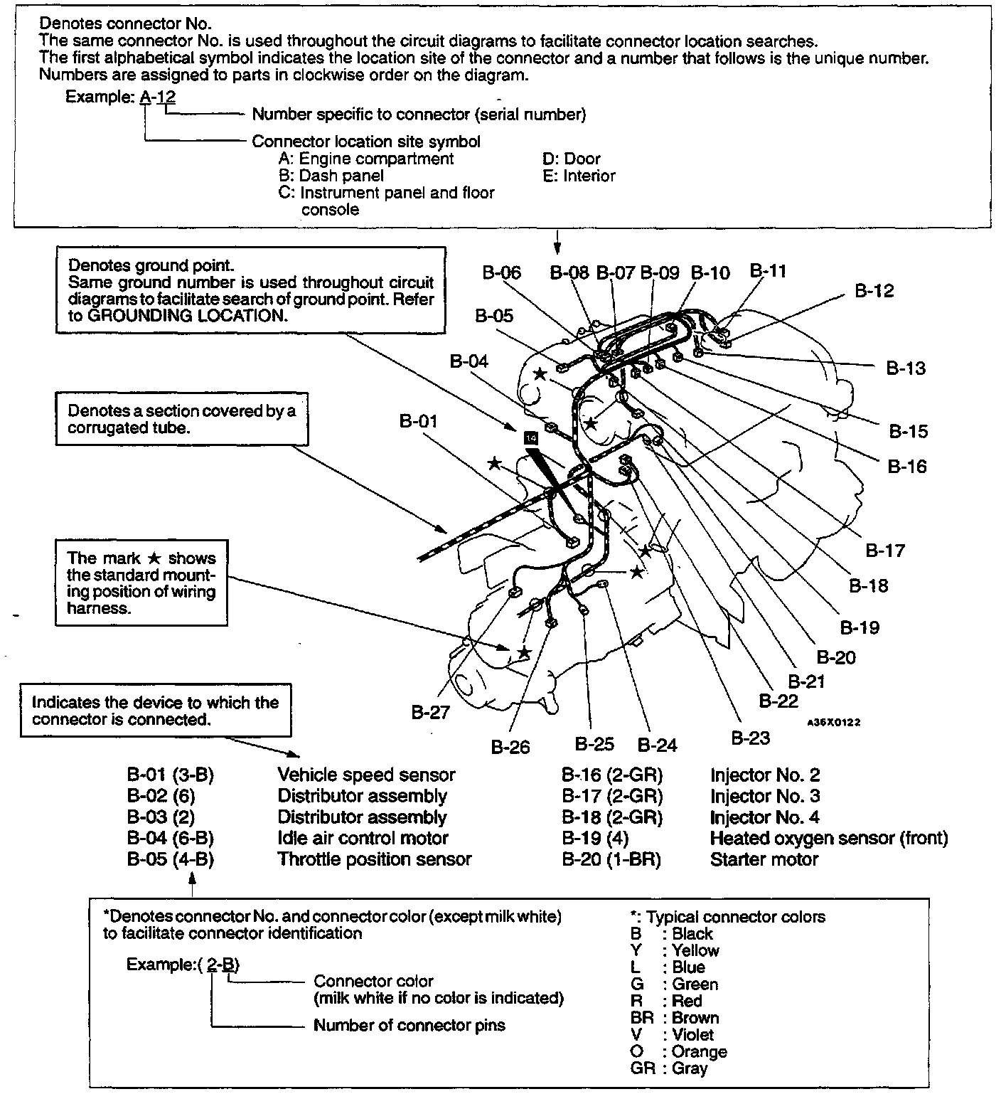 The Wiring harness diagrams clearly show the connector locations and harness routings at each site on actual vehicles.