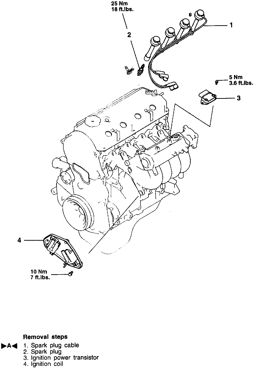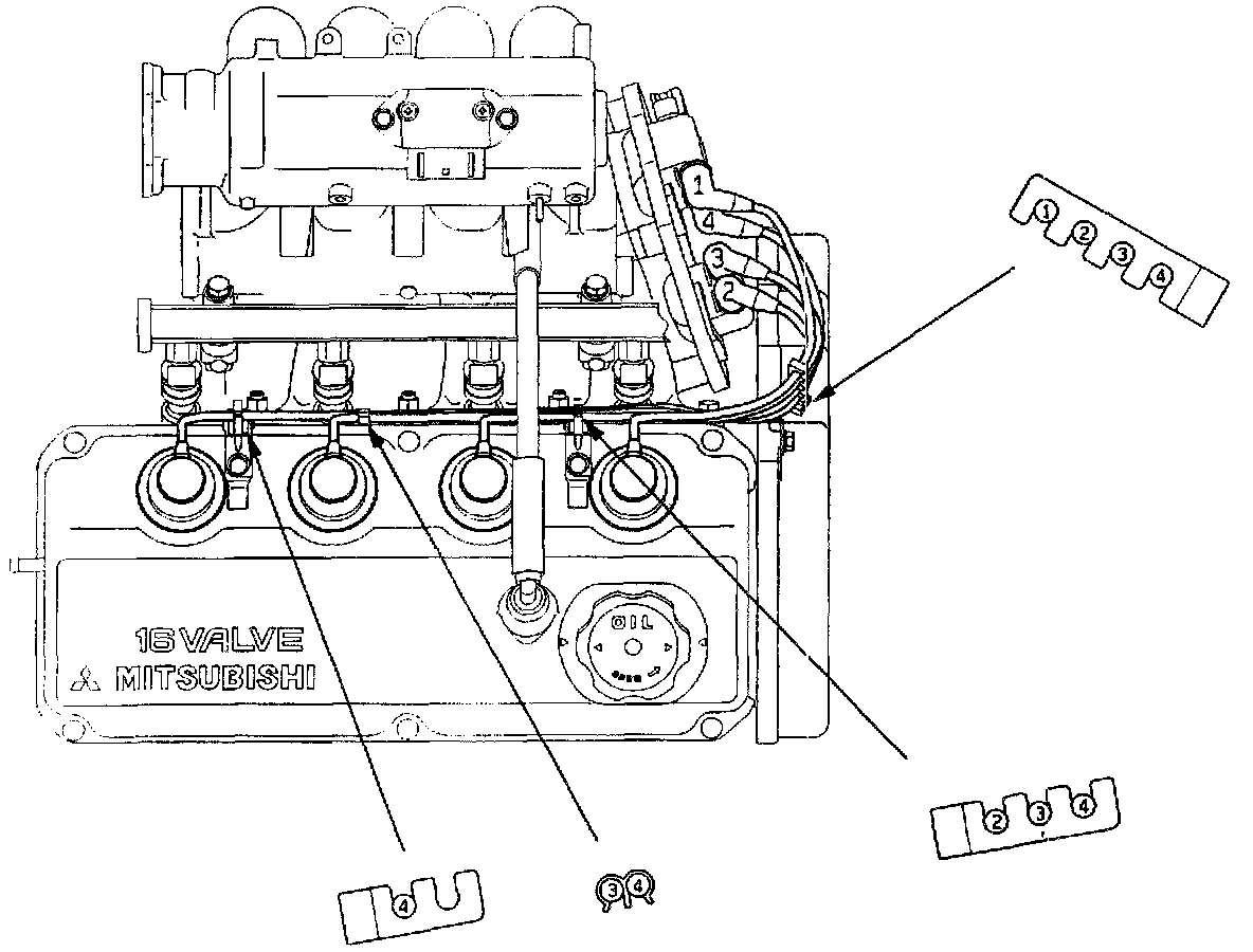 2. The numerals on the support and clamp indicate the spark plug cable No.