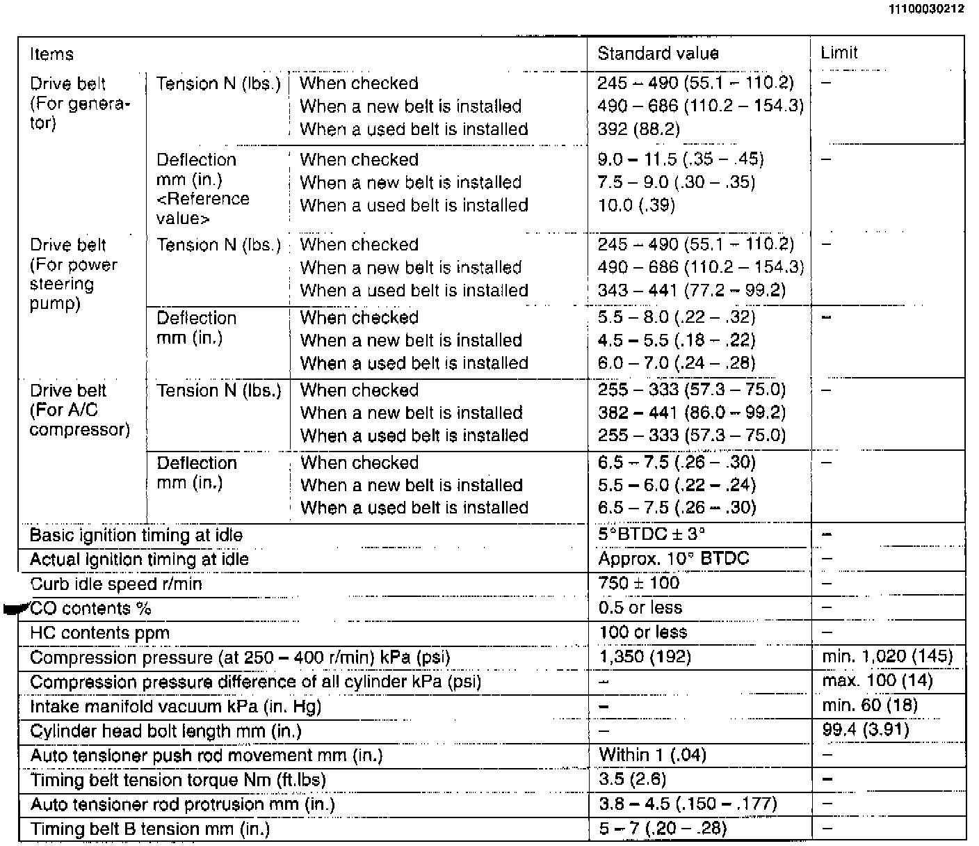 Engine-On Vehicle Service Specifications
