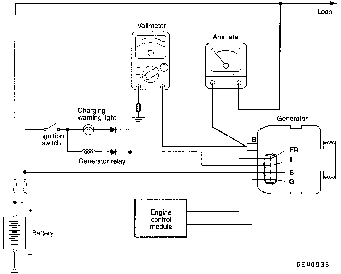 - If insufficient electrical load is used while testing, the specified level of current may not be output even though the generator is normal. In such cases, increase the electrical load by leaving the headlights on with the engine off to discharge the battery before testing.