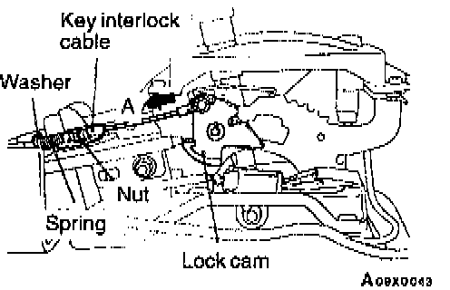 2. Install the spring and washer of the key interlock cable as shown.
