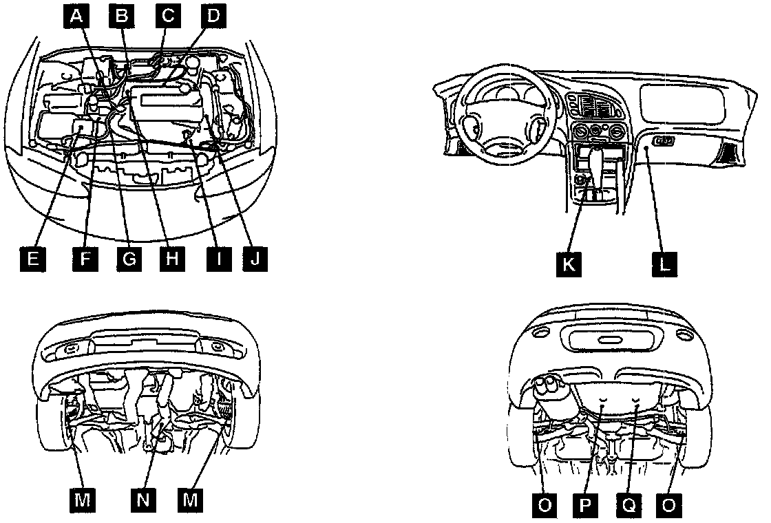 Sensor Locations Views A-J: