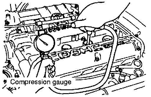 2. If compression is measured with water, oil, fuel, etc., that has come from cracks inside the cylinder, these materials will become heated and will gush out from the spark plug hole, which is dangerous.